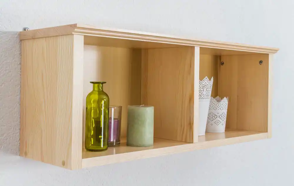 Unsere Wandregale überzeugen nicht nur durch modernes Design, sondern auch durch die hohe Qualität des massiven Kiefernholzes sowie der sehr guten handwerklichen Verarbeitung. Wir verwenden die modernsten Holzveredelungs-Techniken, einschließlich organischer Lacke auf Basis natürlicher Inhaltsstoffe. Das Wandregal mit 2 Fächern bietet viel Stauraum. Durch die einfache Montage wird der Aufbau rasch gelingen.