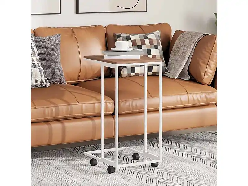 Beistelltisch mit Rollen Weiß 40x30x63,5 cm Holzwerkstoff Online Kaufen
