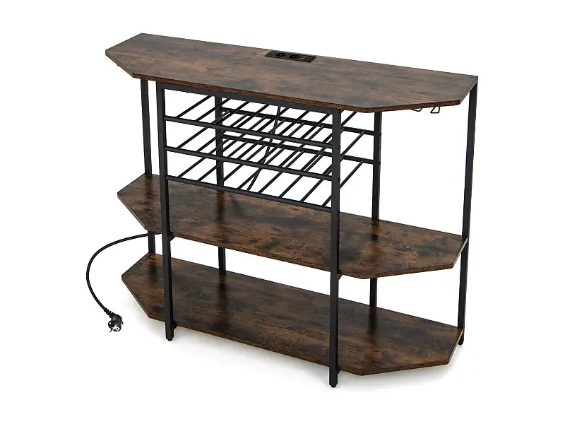 Bestpreis 3-stufiges Industrielles Weinregal mit Steckdosen & Flaschenregal & Glashaltern Weinbarschrank Braun