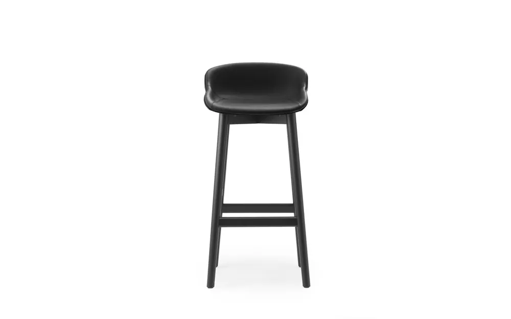 Normann Copenhagen Hyg Barhocker, vollständig gepolstert, SH: 75 cm – Schwarzes Leder/Schwarze Eiche