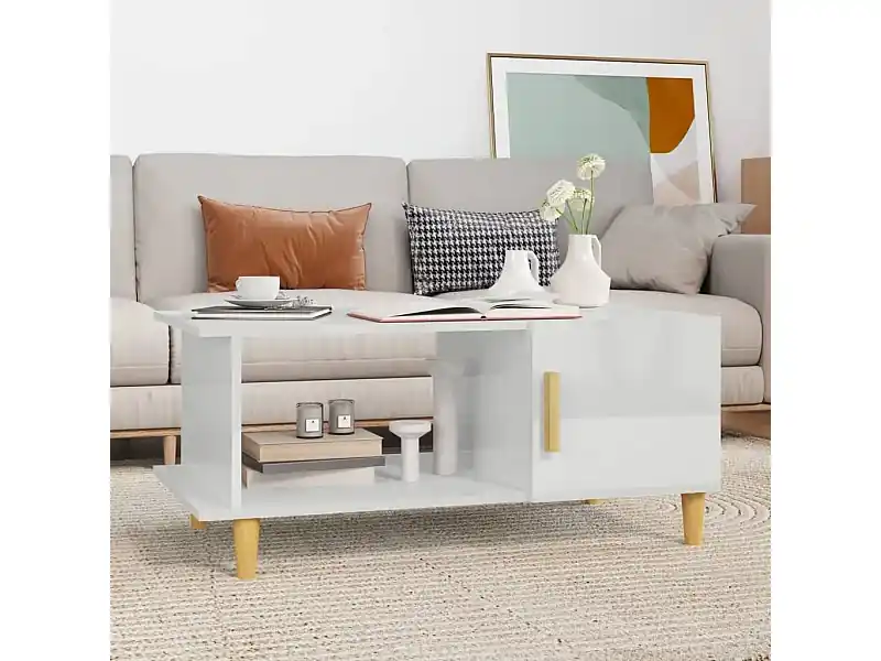 Couchtisch Hochglanz-Weiß 90x50x40 cm Holzwerkstoff Zertifiziert