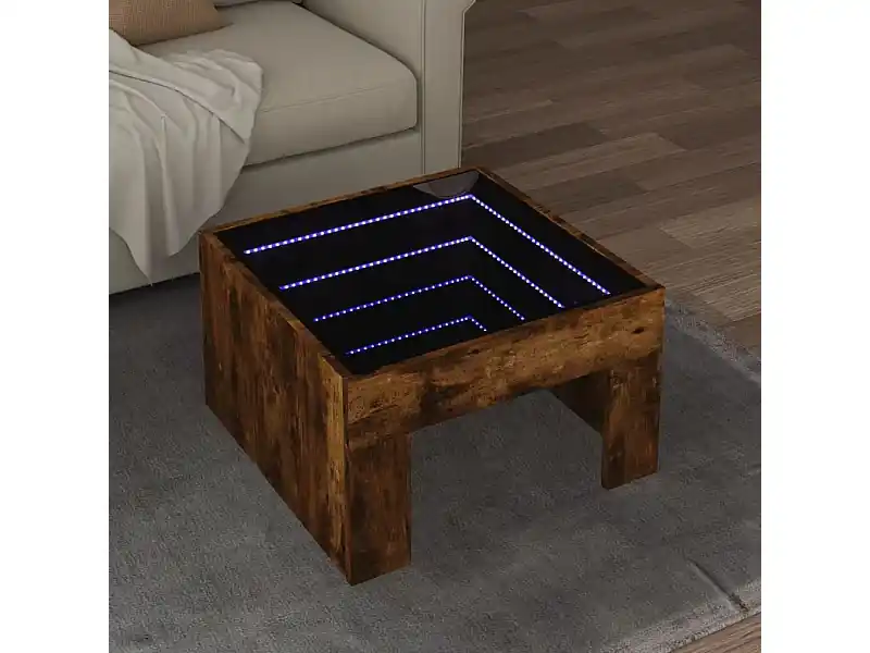 Couchtisch mit Infinity-LED Räuchereiche 50x50x30 cm Preisreduziert