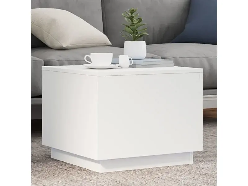 Couchtisch mit LED-Leuchten Weiß 50x50x40 cm Zertifiziert