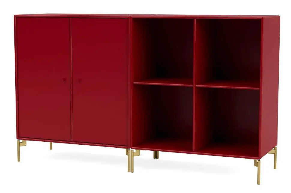 Schönes und vielseitiges Beistelltisch mit Beinen von Montana. Dieses edle Beistelltisch verfügt über ein geräumiges Schrankmodul sowie ein Regalmodul bestehend aus vier Fächern und ist somit eine perfekte Aufbewahrungslösung, wenn Sie Ihre Lieblingssachen sowohl auf den Regalen präsentieren als auch in den Schränken verstecken möchten. Nutzen Sie das Beistelltisch im Wohnzimmer, im Eingangsbereich oder im Homeoffice, um beispielsweise Bücher, Zeitschriften, Büromaterial oder etwas ganz anderes aufzubewahren. Die scharfen und klaren Linien des Beistelltischs machen es nicht nur zu einem funktionalen und praktischen Aufbewahrungsmöbel, sondern auch zu einem minimalistischen Element, das jedem Zuhause ein schönes Detail verleiht. Das Beistelltisch besteht aus zwei Regalmodulen. Daher ist es möglich, die Module als einzelne Regale zu verwenden, wenn sich der Stauraumbedarf ändert oder Sie einfach das Zuhause erneuern möchten.