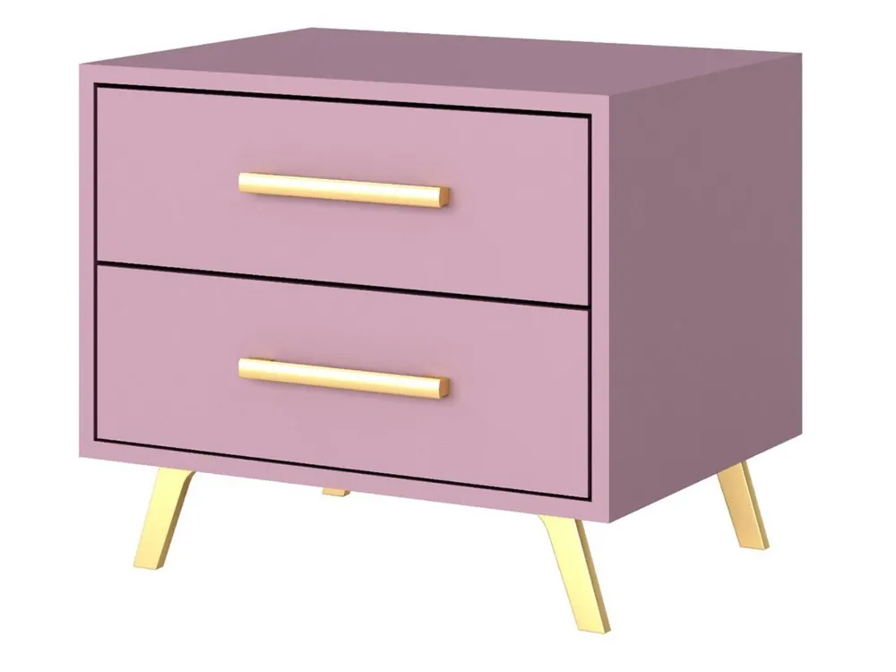 Expressversand Nachtisch mit 2 Schubladen Gold Griffe ALEX II PFLAUME