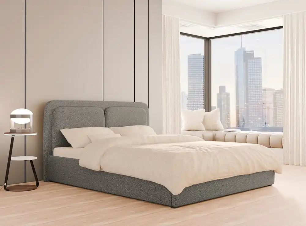 Finale Aktion Modernes Graphit Polsterbett mit Holzrahmen 140×200 LEA