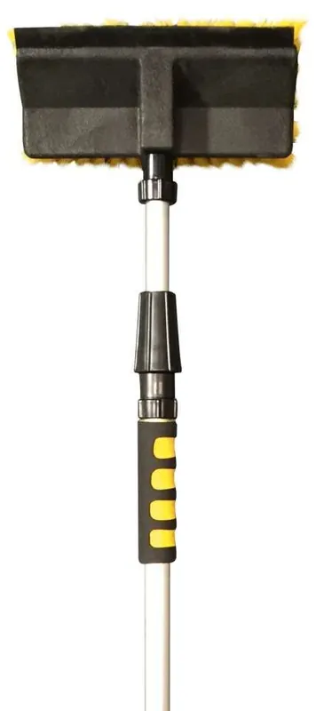 Die GD-Wasserbürste verfügt über einen Teleskopstiel aus Aluminium, den man von 160 cm bis auf 230 cm Länge ausziehen kann. Die Bürste kann direkt an den Gartenschlauch angeschlossen werden.