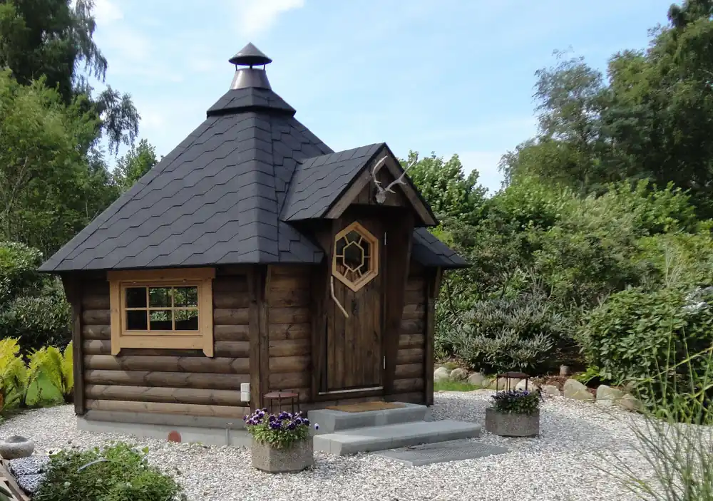 Die Grillkota Deluxe 9 wird in einer der führenden Produktionsstätten in Estland gefertigt. Sie verfügt über 3 Fenster, welche zum öffnen sind. Die Grillkota kann mit und ohne Grillanlage bestellt werden, somit als Gartenkota oder Gartenpavillon genutzt werden. Zur Auswahl stehen 3 Farben für die Dacheindeckung. Der geschlossene Fußboden wird in einfach zu verlegenden Elementen geliefert. Das Dach dieser Grillhütte ist bereits zu 90% vorgeschindelt, dies spart sehr viel Zeit bei der Montage, auch die Wände werden als vorgefertigte Elemente geliefert. Besondere Merkmale der Produktreihe Deluxe sind die höheren Seitenwände und die Premium Grillanlage. Fazit: Durch umfassende Vorarbeiten bereits im Werk, können Sie die Grillkota in wenigen Stunden aufbauen.