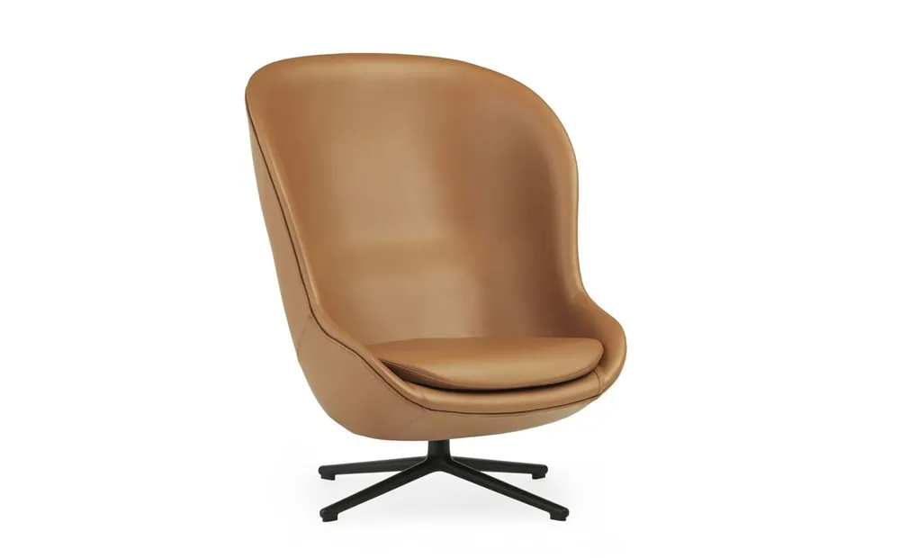Normann Copenhagen Hyg High Lounge Chair SH: 40 cm – Brandy-Leder/Schwarzes Aluminium
