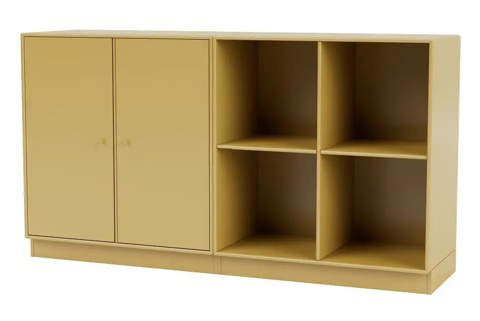 Schönes und vielseitiges Beistelltisch mit hohem Sockel von Montana. Dieses edle Beistelltisch verfügt über ein geräumiges Schrankmodul sowie ein Regalmodul bestehend aus vier Fächern und ist somit eine perfekte Aufbewahrungslösung, wenn Sie Ihre Lieblingssachen sowohl auf den Regalen präsentieren als auch in den Schränken verstecken möchten. Nutzen Sie das Beistelltisch im Wohnzimmer, im Eingangsbereich oder im Homeoffice, um beispielsweise Bücher, Zeitschriften, Büromaterial oder etwas ganz anderes aufzubewahren. Die scharfen und klaren Linien des Beistelltischs machen es nicht nur zu einem funktionalen und praktischen Aufbewahrungsmöbel, sondern auch zu einem minimalistischen Element, das jedem Zuhause ein schönes Detail verleiht. Das Beistelltisch besteht aus zwei Regalmodulen. Daher ist es möglich, die Module als einzelne Regale zu verwenden, wenn sich der Stauraumbedarf ändert oder Sie einfach das Zuhause erneuern möchten.