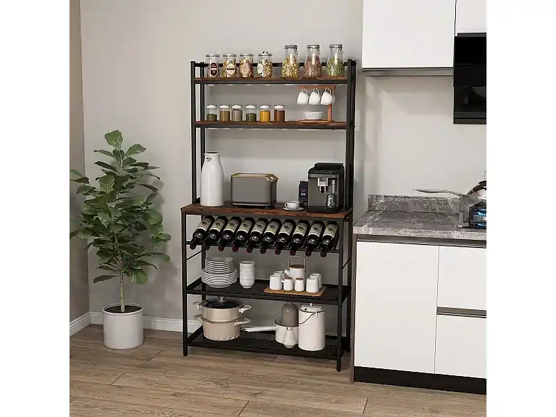 Jetzt Kaufen Küchenregal mit Weinhalter bis 10 Flaschen & Arbeitsplatte & 5 Ablagen Bäckerregal Braun