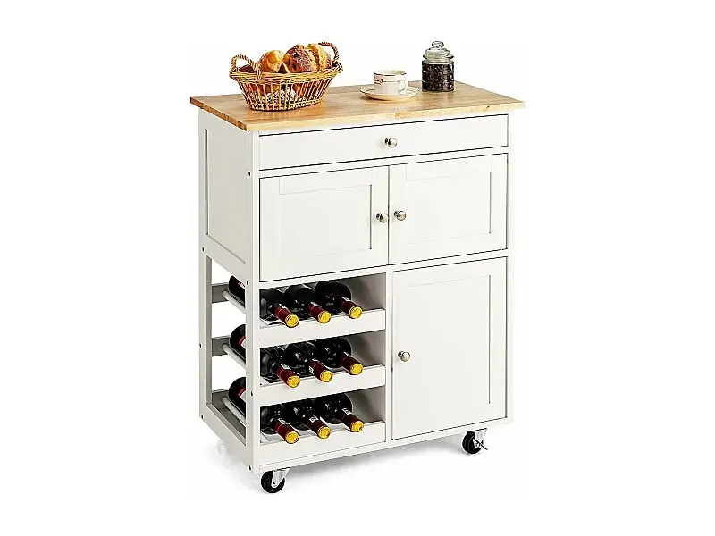 Jetzt Kaufen Servierwagen mit Schubladen und 3-stöckigem, Küchenwagen Küchenregal Rollwagen Holz weiß