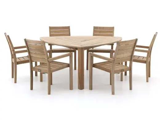 Das ROUGH S Gartenmöbel-Set ist ein robustes Set aus Teakholz für alle, die gerne mit 6 Personen an einem massiven Tisch sitzen – ohne viel Pflegeaufwand und ohne wackelnde Beine. Die extra dicke Tischplatte und die stabilen Beine sorgen für einen standfesten Tisch, an dem Sie unbeschwert essen, etwas trinken oder Spiele spielen können, selbst wenn alle gleichzeitig aufstehen. Die Stühle sind stapelbar. Nutzen Sie das Set einmal nicht, stapeln Sie sie einfach und Ihre Terrasse bleibt übersichtlich. Der Farbton Old Teak Greywash verleiht dem Set eine ruhige, neutrale Optik, zu der Sie Ihre eigenen Kissen und Accessoires leicht kombinieren können. Suchen Sie ein solides Gartenmöbel-Set aus Holz für entspanntes Leben im Freien? Dann liegen Sie mit diesem Set genau richtig.
