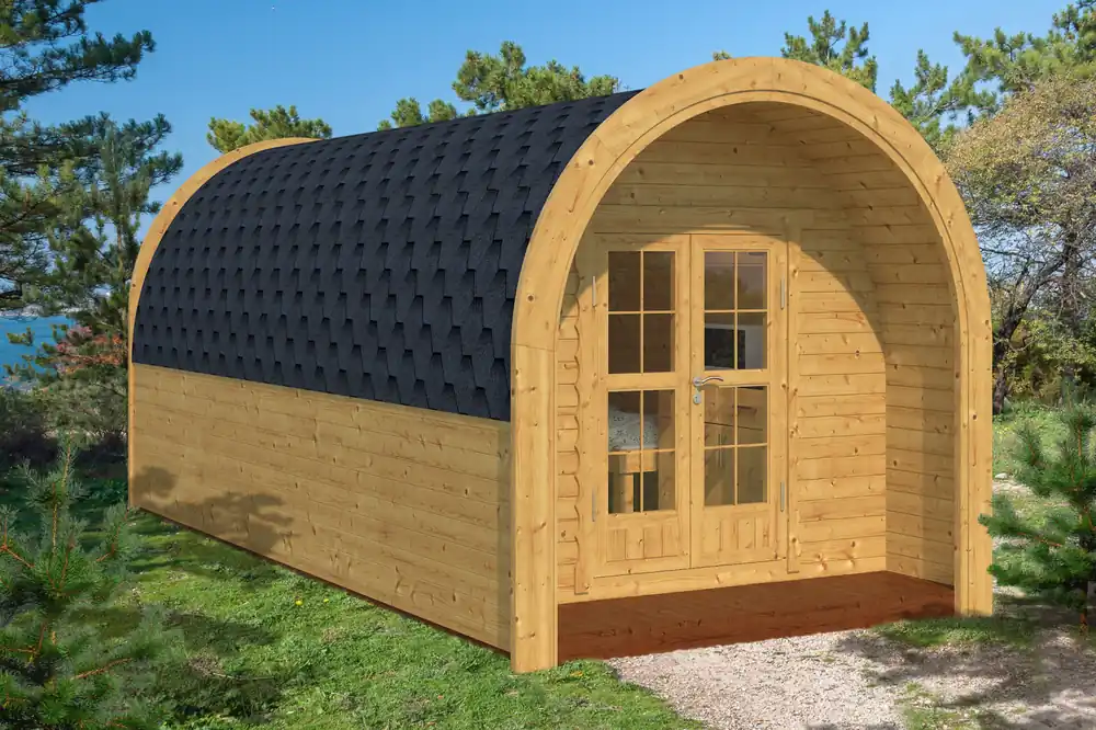 Das Camping Pod Arctic Maggie 5,5 ist aus Thermoholz von hochwertigen nordischen Kiefern gefertigt. Durch das rustikale Erscheinungsbild wird dieser Pod in Ihrem Garten zu einem deutlichen Blickfang.