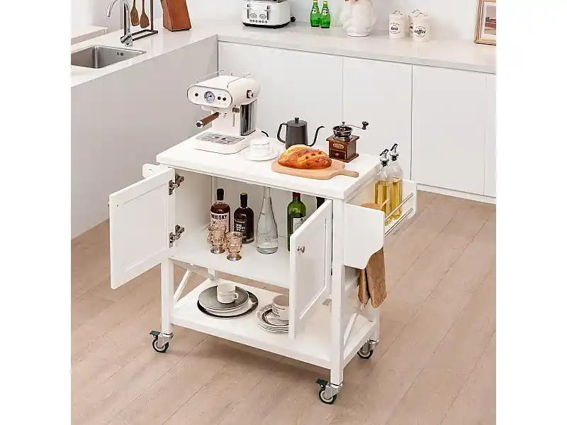 Kostenfreie Lieferung Küchenwagen mit Schrank & Ablage & Handtuchhalter & Gewürzregal Servierwagen Weiß