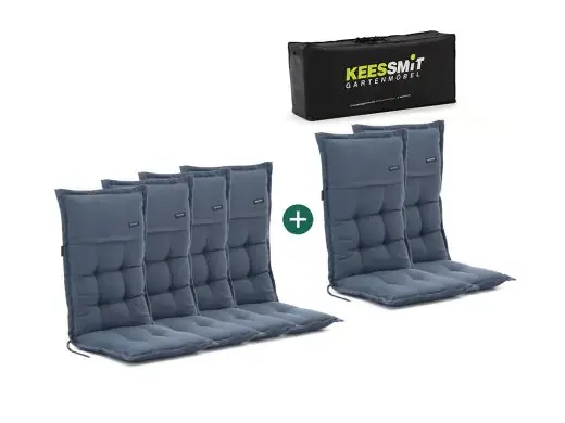 Das Madison Auflage Hochlehner Set von 6 in der Farbe Woven Denim Grey bietet Ihnen zusätzlichen Komfort für Ihre Gartenstühle. Diese dicken Kissen sind ideal für verstellbare Gartenstühle und sorgen dafür, dass Sie auch bei längeren Sitzzeiten bequem sitzen. Dank der festen Polsterung genießen Sie entspannte Stunden im Freien. Im Lieferumfang sind zwei kostenlose Kissen und eine Kissentasche enthalten, die Ihnen zusätzlichen Komfort und praktische Aufbewahrungsmöglichkeiten bieten. Diese Kissen eignen sich besonders gut für Holz-Gartenstühle, bei denen Sie ein wenig mehr Sitzkomfort wünschen.