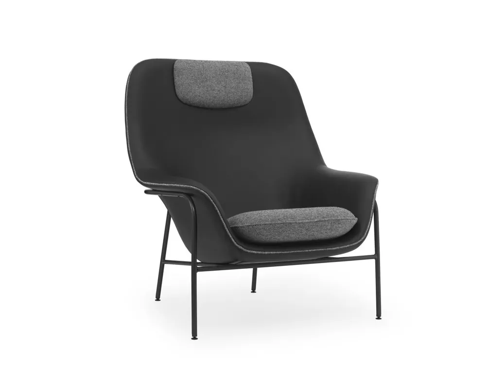 Normann Copenhagen Drape Lounge Chair High Steel H: 103 cm – Ultra Leather Black / Hallingdal 0166