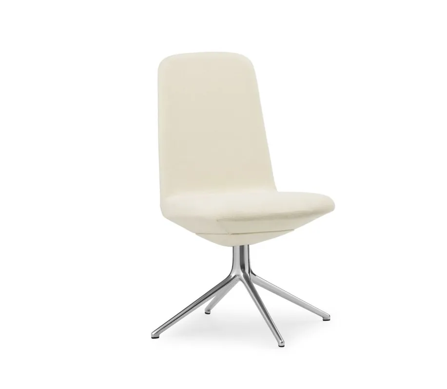 Stilvoller Bürostuhl von Normann Copenhagen mit einer schönen Silhouette und modernem Ausdruck, der jedes Büro schmückt – egal egal, ob zu Hause oder in größeren Arbeitsumgebungen. Komfort, Funktionalität und Ästhetik stehen bei diesem Design im Vordergrund, wobei der exklusive Stuhl aus einer Sitzfläche aus PU-Hartschaum mit Vollpolsterung und einem innenliegenden Stahlgestell besteht. Die Basis ist entweder mit vier statischen Beinen oder mit fünf Rädern mit drehbarer Basis und einer Neigung von 10 Grad erhältlich. Der Sockel kann in poliertem oder schwarz pulverbeschichtetem Aluminium gewählt werden. Zur Auswahl steht ein Kissen, das aus Furnier und PU-Schaum besteht.