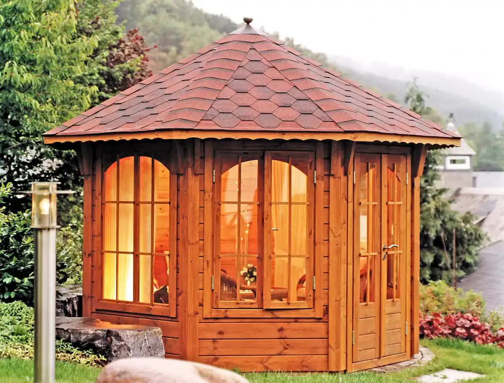 Der Pavillon Milano 7m² ist aus hochwertiger nordischer Kiefer und massiver Bauweise gefertigt – ein Garant für Stabilität und Langlebigkeit. Der Pavillon wird ihnen als Bausatz geliefert, in dem bereits die wichtigsten Elemente fest integriert sind. Sie brauchen also wirklich nur noch grobe Einzelteile zusammenfügen und haben binnen weniger Arbeitsstunden Ihren Pavillon als neuen Mittelpunkt in Ihrem Garten installiert.