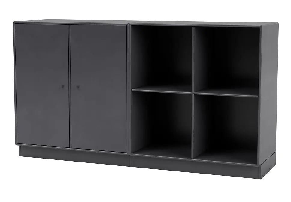 Schönes und vielseitiges Beistelltisch mit hohem Sockel von Montana. Dieses edle Beistelltisch verfügt über ein geräumiges Schrankmodul sowie ein Regalmodul bestehend aus vier Fächern und ist somit eine perfekte Aufbewahrungslösung, wenn Sie Ihre Lieblingssachen sowohl auf den Regalen präsentieren als auch in den Schränken verstecken möchten. Nutzen Sie das Beistelltisch im Wohnzimmer, im Eingangsbereich oder im Homeoffice, um beispielsweise Bücher, Zeitschriften, Büromaterial oder etwas ganz anderes aufzubewahren. Die scharfen und klaren Linien des Beistelltischs machen es nicht nur zu einem funktionalen und praktischen Aufbewahrungsmöbel, sondern auch zu einem minimalistischen Element, das jedem Zuhause ein schönes Detail verleiht. Das Beistelltisch besteht aus zwei Regalmodulen. Daher ist es möglich, die Module als einzelne Regale zu verwenden, wenn sich der Stauraumbedarf ändert oder Sie einfach das Zuhause erneuern möchten.