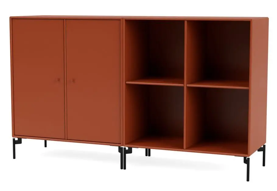 Schönes und vielseitiges Beistelltisch mit Beinen von Montana. Dieses edle Beistelltisch verfügt über ein geräumiges Schrankmodul sowie ein Regalmodul bestehend aus vier Fächern und ist somit eine perfekte Aufbewahrungslösung, wenn Sie Ihre Lieblingssachen sowohl auf den Regalen präsentieren als auch in den Schränken verstecken möchten. Nutzen Sie das Beistelltisch im Wohnzimmer, im Eingangsbereich oder im Homeoffice, um beispielsweise Bücher, Zeitschriften, Büromaterial oder etwas ganz anderes aufzubewahren. Die scharfen und klaren Linien des Beistelltischs machen es nicht nur zu einem funktionalen und praktischen Aufbewahrungsmöbel, sondern auch zu einem minimalistischen Element, das jedem Zuhause ein schönes Detail verleiht. Das Beistelltisch besteht aus zwei Regalmodulen. Daher ist es möglich, die Module als einzelne Regale zu verwenden, wenn sich der Stauraumbedarf ändert oder Sie einfach das Zuhause erneuern möchten.