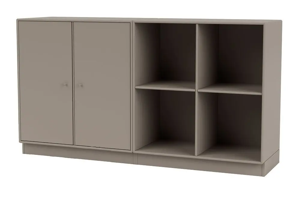Schönes und vielseitiges Beistelltisch mit hohem Sockel von Montana. Dieses edle Beistelltisch verfügt über ein geräumiges Schrankmodul sowie ein Regalmodul bestehend aus vier Fächern und ist somit eine perfekte Aufbewahrungslösung, wenn Sie Ihre Lieblingsdinge sowohl auf den Regalen präsentieren als auch in den Schränken verstecken möchten. Nutzen Sie das Beistelltisch im Wohnzimmer, im Eingangsbereich oder im Homeoffice, um beispielsweise Bücher, Zeitschriften, Büromaterial oder etwas ganz anderes aufzubewahren. Die scharfen und klaren Linien des Beistelltischs machen es nicht nur zu einem funktionalen und praktischen Aufbewahrungsmöbel, sondern auch zu einem minimalistischen Element, das jedem Zuhause ein schönes Detail verleiht. Das Beistelltisch besteht aus zwei Regalmodulen. Daher ist es möglich, die Module als einzelne Regale zu verwenden, wenn sich der Stauraumbedarf ändert oder Sie einfach das Zuhause erneuern möchten.