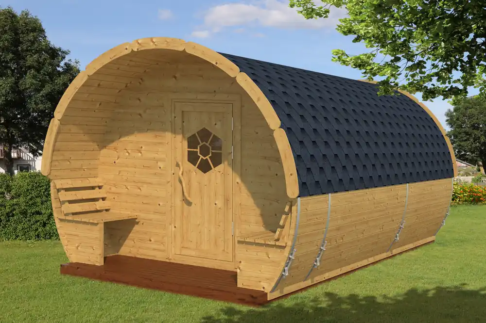 Das Camping Pod Arctic Marie ist aus Thermoholz von hochwertigen nordischen Kiefern gefertigt. Durch das rustikale Erscheinungsbild wird dieser Pod in Ihrem Garten zu einem deutlichen Blickfang.
