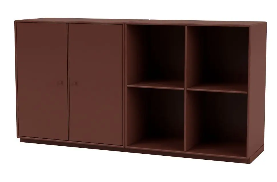 Schönes und vielseitiges Beistelltisch mit niedrigem Sockel von Montana. Dieses edle Beistelltisch verfügt über ein geräumiges Schrankmodul sowie ein Regalmodul bestehend aus vier Fächern und ist somit eine perfekte Aufbewahrungslösung, wenn Sie Ihre Lieblingssachen sowohl auf den Regalen präsentieren als auch in den Schränken verstecken möchten. Nutzen Sie das Beistelltisch im Wohnzimmer, im Eingangsbereich oder im Homeoffice, um beispielsweise Bücher, Zeitschriften, Büromaterial oder etwas ganz anderes aufzubewahren. Die scharfen und klaren Linien des Beistelltischs machen es nicht nur zu einem funktionalen und praktischen Aufbewahrungsmöbel, sondern auch zu einem minimalistischen Element, das jedem Zuhause ein schönes Detail verleiht. Das Beistelltisch besteht aus zwei Regalmodulen. Daher ist es möglich, die Module als einzelne Regale zu verwenden, wenn sich der Stauraumbedarf ändert oder Sie einfach das Zuhause erneuern möchten.