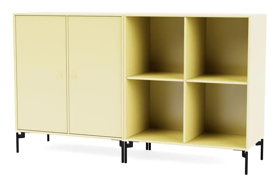 Schönes und vielseitiges Beistelltisch mit Beinen von Montana. Dieses edle Beistelltisch verfügt über ein geräumiges Schrankmodul sowie ein Regalmodul bestehend aus vier Fächern und ist somit eine perfekte Aufbewahrungslösung, wenn Sie Ihre Lieblingssachen sowohl auf den Regalen präsentieren als auch in den Schränken verstecken möchten. Nutzen Sie das Beistelltisch im Wohnzimmer, im Eingangsbereich oder im Homeoffice, um beispielsweise Bücher, Zeitschriften, Büromaterial oder etwas ganz anderes aufzubewahren. Die scharfen und klaren Linien des Beistelltischs machen es nicht nur zu einem funktionalen und praktischen Aufbewahrungsmöbel, sondern auch zu einem minimalistischen Element, das jedem Zuhause ein schönes Detail verleiht. Das Beistelltisch besteht aus zwei Regalmodulen. Daher ist es möglich, die Module als einzelne Regale zu verwenden, wenn sich der Stauraumbedarf ändert oder Sie einfach das Zuhause erneuern möchten.