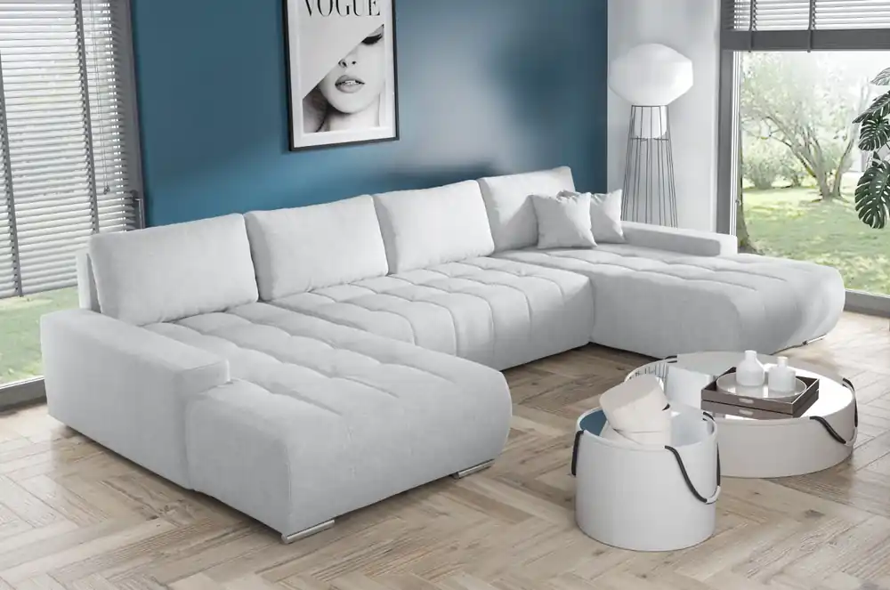 Ecksofa mit Schlaffunktion aus Velourstoff KLARA U-Form,