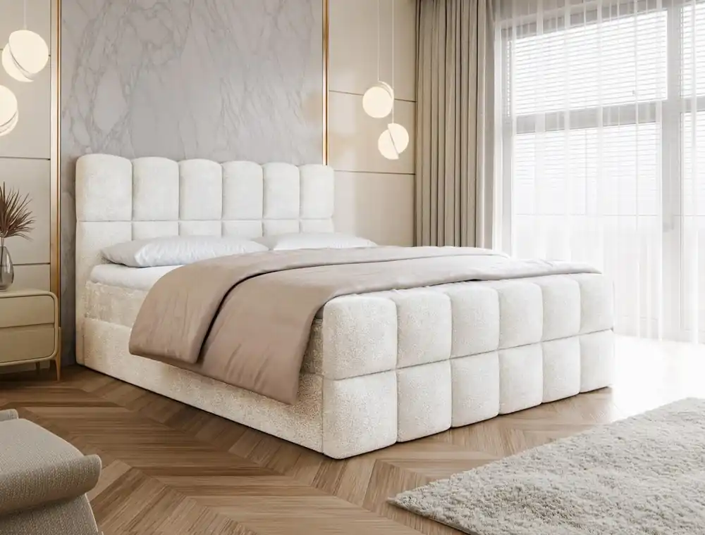 Wolken Boxspringbett mit zwei Bettkästen Weiß 140×200 ARIA Neue Ware
