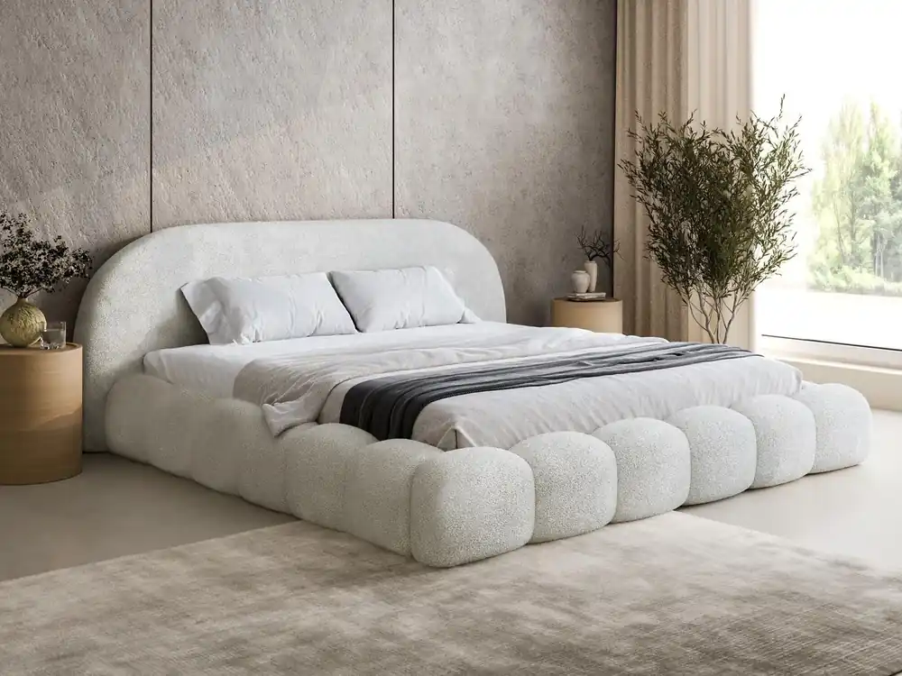 QUELLE zeichnet sich durch eine einzigartige Bouclé-Struktur aus, die oft als „Schafwolle“ bezeichnet wird. Ihre weiche, gemütliche Textur verleiht Innenräumen einen besonderen Charakter und Eleganz und eignet sich sowohl für klassische als auch moderne Arrangements. Der Stoff QUELLE findet nicht nur in Wohnräumen Anwendung, sondern auch in gewerblichen Bereichen wie Hotels, Pensionen oder Restaurants, wo er eine angenehme Atmosphäre schafft und das Prestige des Raumes unterstreicht. .