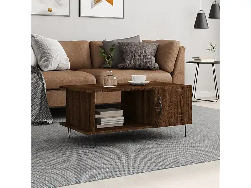 Zertifiziert Couchtisch Braun Eichen-Optik 90x50x40 cm Holzwerkstoff