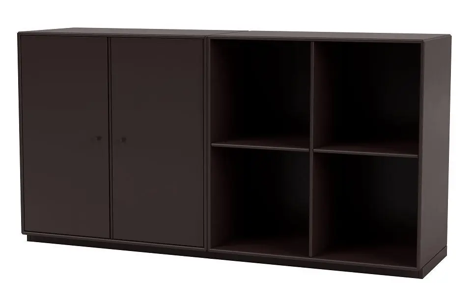 Schönes und vielseitiges Beistelltisch mit niedrigem Sockel von Montana. Dieses edle Beistelltisch verfügt über ein geräumiges Schrankmodul sowie ein Regalmodul bestehend aus vier Fächern und ist somit eine perfekte Aufbewahrungslösung, wenn Sie Ihre Lieblingssachen sowohl auf den Regalen präsentieren als auch in den Schränken verstecken möchten. Nutzen Sie das Beistelltisch im Wohnzimmer, im Eingangsbereich oder im Homeoffice, um beispielsweise Bücher, Zeitschriften, Büromaterial oder etwas ganz anderes aufzubewahren. Die scharfen und klaren Linien des Beistelltischs machen es nicht nur zu einem funktionalen und praktischen Aufbewahrungsmöbel, sondern auch zu einem minimalistischen Element, das jedem Zuhause ein schönes Detail verleiht. Das Beistelltisch besteht aus zwei Regalmodulen. Daher ist es möglich, die Module als einzelne Regale zu verwenden, wenn sich der Stauraumbedarf ändert oder Sie einfach das Zuhause erneuern möchten.