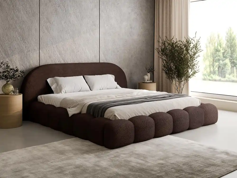 - Das Bett ist freistehend und die Rückseite des Bettes ist gepolstert.